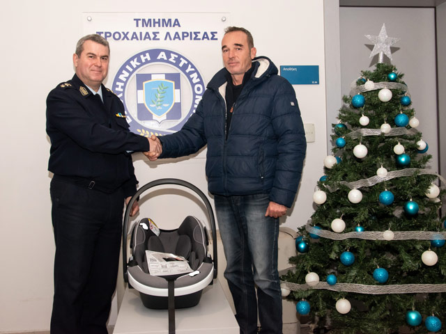 Δωρίστηκε από τον Διοικητή του Τμήματος Τροχαίας Λάρισας, παιδικό κάθισμα αυτοκινήτου στον πατέρα του πρώτο παιδιού που γεννήθηκε στη Λάρισα