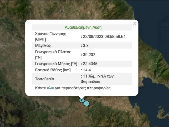 Σεισμός 3,8 ρίχτερ σημειώθηκε στα Φάρσαλα