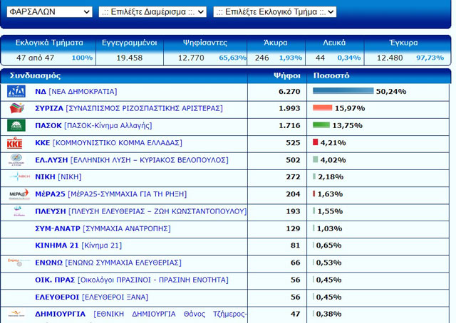 Έσπασε τα κοντέρ η ΝΔ στα Φάρσαλα