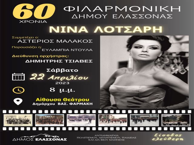 Δήμος Ελασσόνας: Μεγάλη συναυλία με τη Νίνα Λοτσάρη για τα 60 χρόνια της Φιλαρμονικής