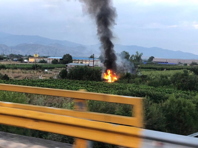Αυτοκίνητο κάηκε έξω από τον Αμπελώνα
