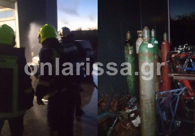 Φωτιά σε επιχείρηση στον Τύρναβο – Αποφεύχθηκε έκρηξη από φιάλες ασετιλίνης