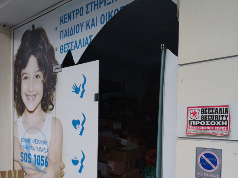 Απόπειρα διάρρηξης και σοβαρές υλικές ζημιές στο Κέντρο Στήριξης Παιδιού και Οικογένειας του Οργανισμού «Το Χαμόγελο του Παιδιού» στη Λάρισα