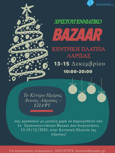 Χριστουγεννιάτικο Bazaar του Κέντρου Ημέρας Άνοιας Λάρισας – ΕΠΑΨΥ στην Κεντρική Πλατεία Λάρισας