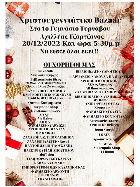 Χριστουγεννιάτικο Bazaar στο 1ο Γυμνάσιο Τυρνάβου