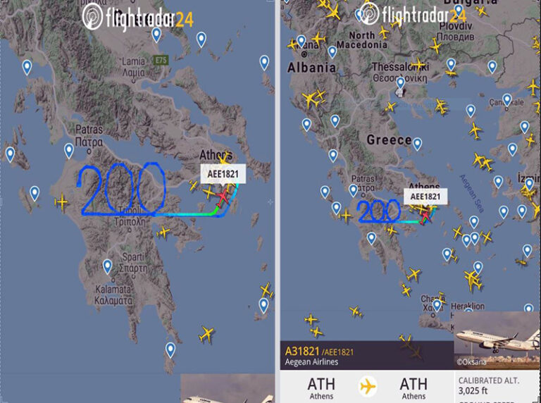 Η πτήση της Aegean Airlines AEE 1821 σχημάτισε πριν από λίγο πάνω από την Πελοπόννησο τον αριθμό 200…