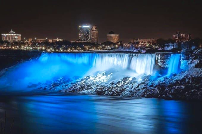 Οι καταρράκτες του Νιαγάρα στα Ελληνικά χρώματα για τον εορτασμό της 25ης Μαρτίου