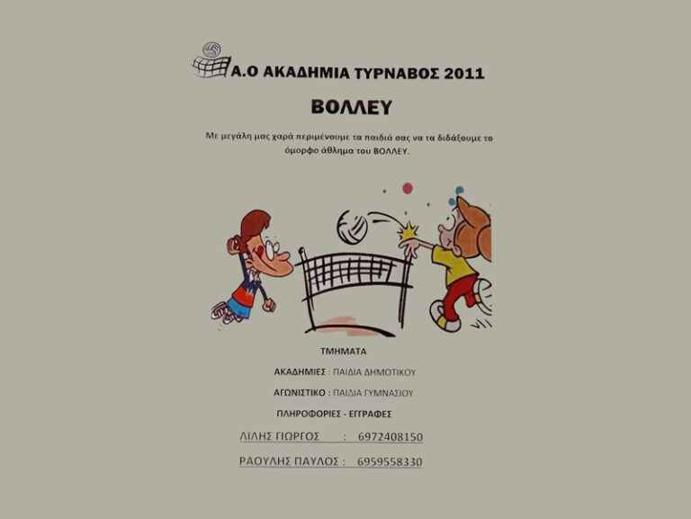 Η Ακαδημία Τύρναβος ζητάει να προσλάβει γυμναστή/τρια για την εκμάθηση βόλεϊ