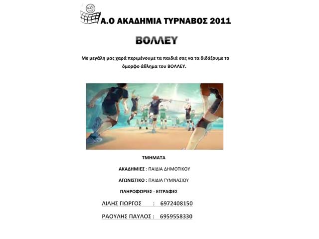 Ακαδημία Τύρναβος 2011 ΒΟΛΛΕΥ (ΑΟ)