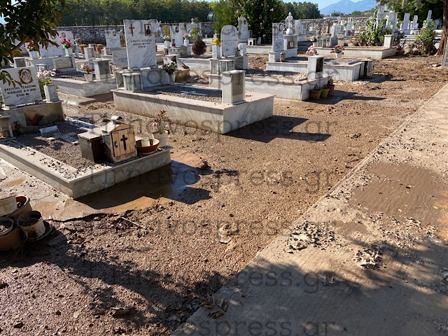 Καταστροφές και λάσπη από την πλημμύρα στο νεκροταφείο στην συνοικία του Αμπελώνα