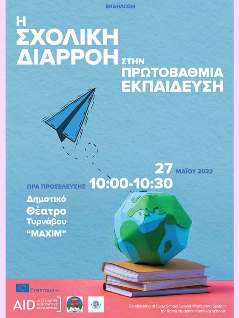 4ο Δημοτικό Σχολείο Τυρνάβου και ΑID συνδιοργανώνουν εκδήλωση: «Η Σχολική Διαρροή στην Πρωτοβάθμια Εκπαίδευση»