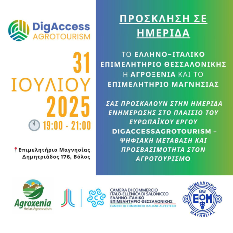 Η Αγροξενία, το Ελληνο-Ιταλικό Επιμελητήριο και το Επιμελητήριο Σερρών εν δράσει για τη ψηφιακή επανάσταση του ελληνικού αγροτουρισμού