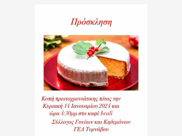 Την Κυριακή 14/1 η κοπή πίτας του ΓΕΛ Τυρνάβου