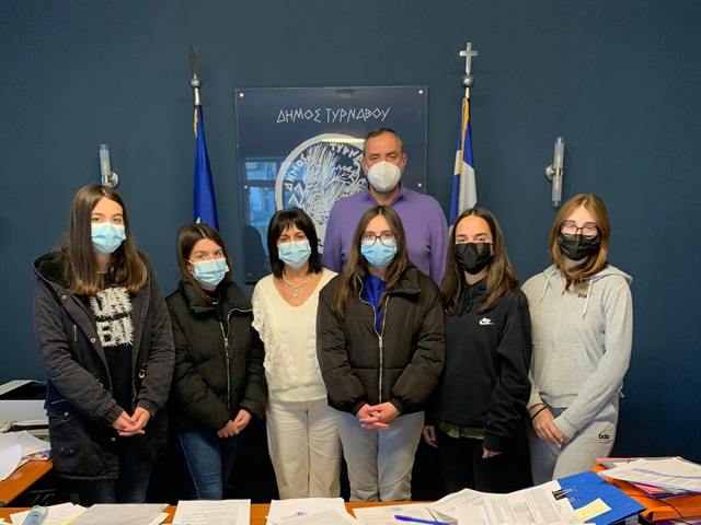 Ενημέρωση αντιπροσωπείας μαθητών ΓΕΛ Τυρνάβου από τον Δήμαρχο Τυρνάβου Γ. Κόκουρα για τον κυκλικό κόμβο