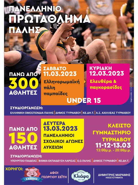 Πανελλήνιοι Αγώνες Πάλης U15 το Σαββατοκύριακο 11 & 12 Μαρτίου στον Τύρναβο