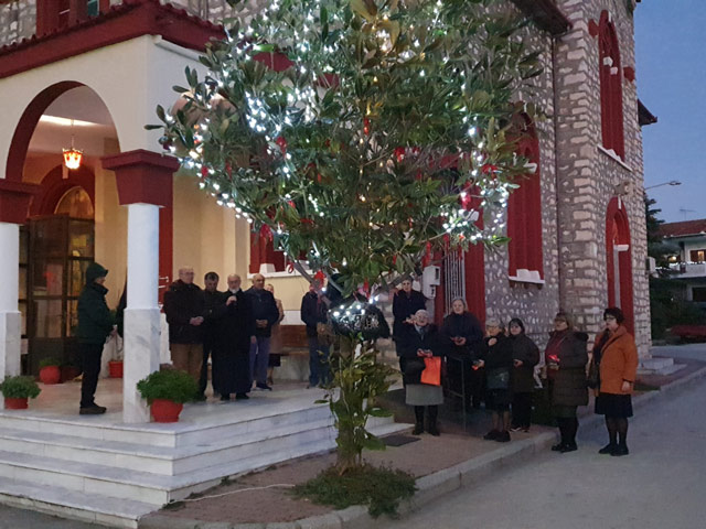 Ένα δέντρο άναψε στο Άγιο Ιωάννη Τυρνάβου από τον π. Γεώργιο