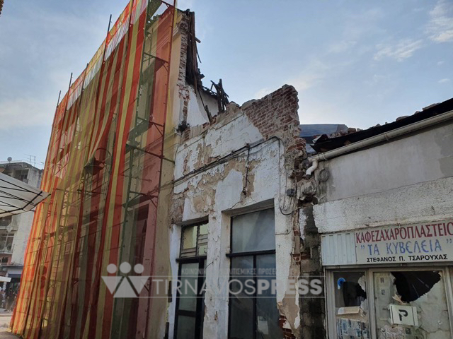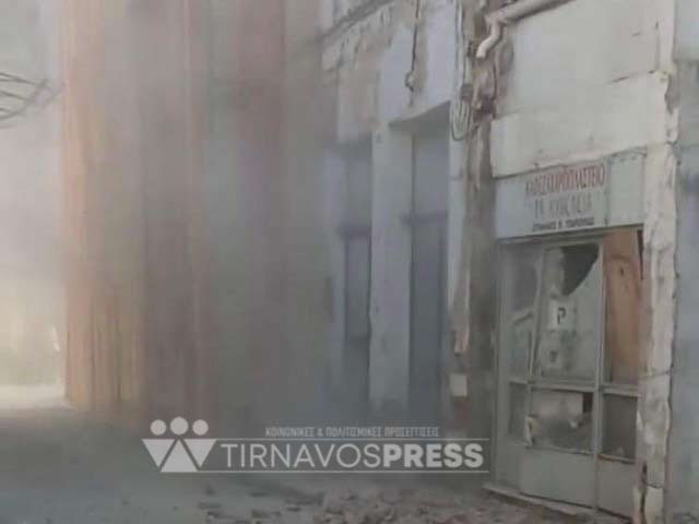 Νέες φωτογραφίες από τη στιγμή της κατάρρευσης του κτιρίου στην Κεντρική Πλατεία Τυρνάβου
