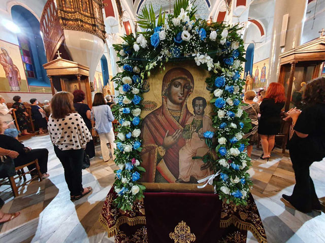 Η λιτανεία της Ιεράς εικόνας της Παναγίας της Οδηγήτριας στην Κεντρική Πλατεία Τυρνάβου