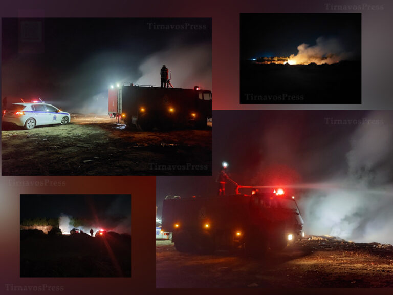 Ολονύχτιες προσπάθειες για κατάσβεση της φωτιάς στην «παράνομη» χωματερή στον Τύρναβο