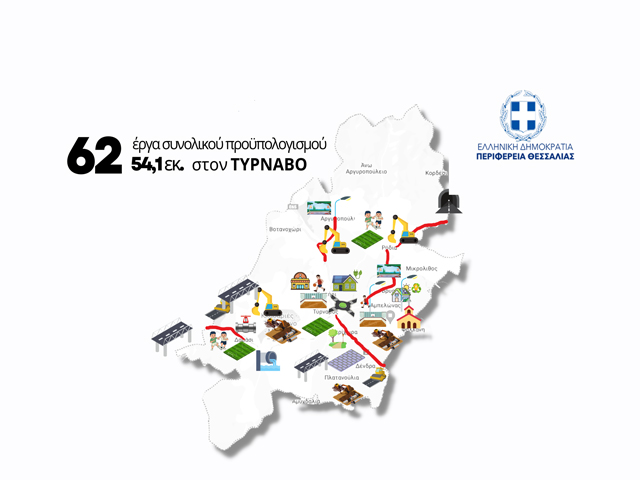 Περιφέρεια Θεσσαλίας: 62 έργα στο Δήμο Τυρνάβου συνολικού προϋπολογισμού 54,1 εκατ. €