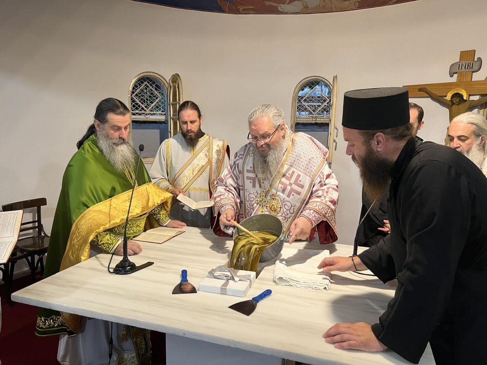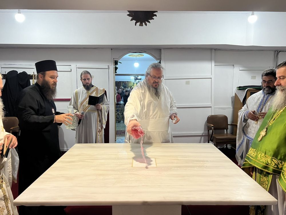 Είχε προηγηθεί χθες η κατάθεση των Ιερών Λειψάνων Νεομαρτύρων Αγίων, των Αγίων Μαρτύρων Νταού Πεντέλης, του Αγίου Γεωργίου του εκ Ραψάνης και του Αγίου Ιωάννου του Μονεμβασιώτου στον οποίο τιμάται το Ιερό Παρεκκλήσιο.