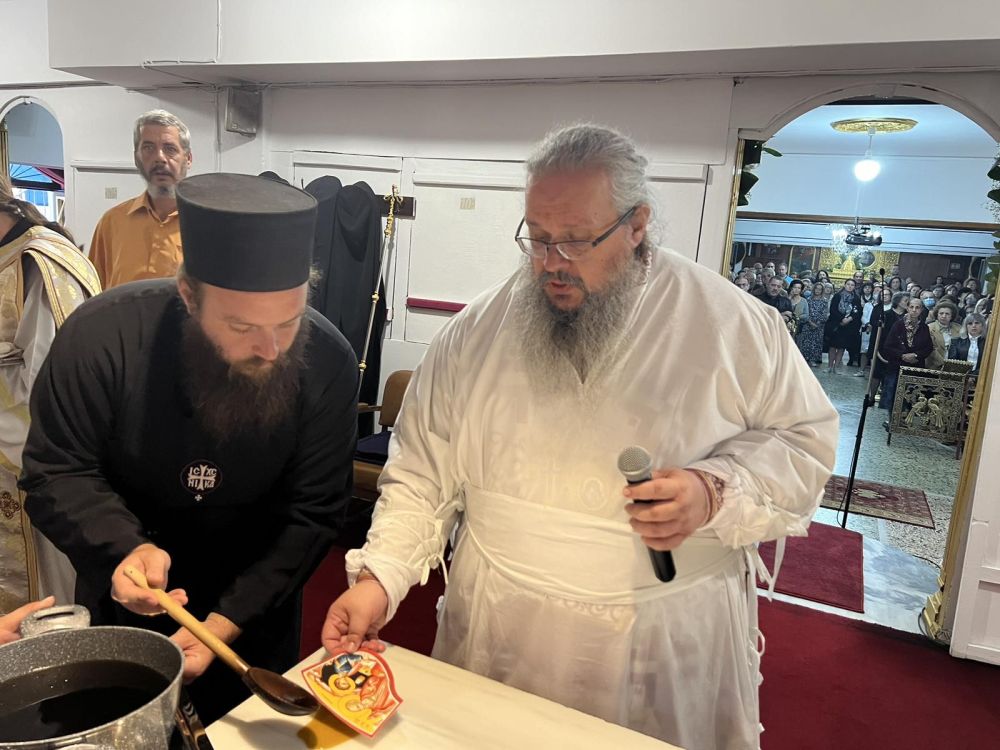Ευχήθηκε δε στους πιστούς πλούσια την ευλογία του Αγίου Θεού στις οικογένειές τους και τα καλά τους έργα.