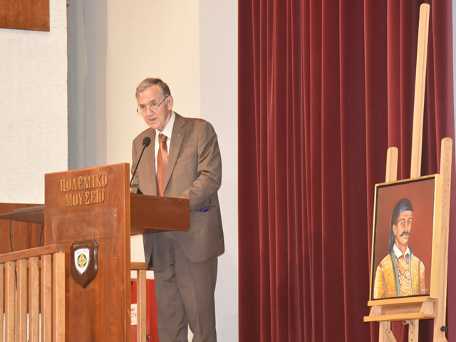 Στη συνέχεια στο αμφιθέατρο «Ιωάννης Καποδίστριας» όπου ο οικοδεσπότης Αντιπρόεδρος του Πολεμικού Μουσείο καλωσόρισε τους παρισταμένους ενώ χαιρετισμό απηύθυνε ο Περιφερειάρχης Δυτικής Μακεδονίας κ. Γεωργ. Κασαπίδης και η Δημοτική Σύμβουλος κα Αναστασία Πράπα εκ μέρους του Δημάρχου Εορδαίας.