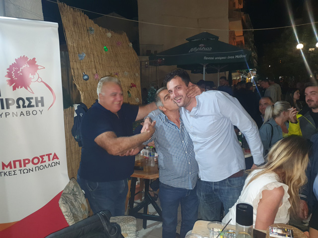 Όπως ήταν λογικό από τα πρώτα αποτελέσματα όλος ο κόσμος που είχε συγκεντρωθεί από νωρίς ξέσπασε σε χειροκροτήματα και ”έπνιξε” τον νέο δήμαρχο στις αγκαλιές.