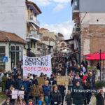 Με πανό και συνθήματα οι συμμετέχοντες στο συλλαλητήριο ζητούν δικαίωση για τις ψυχές των 57 συνανθρώπων μας που βρήκαν τραγικό θάνατο στις 28 Φεβρουαρίου 2023.