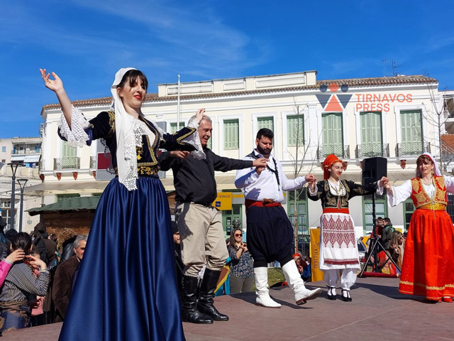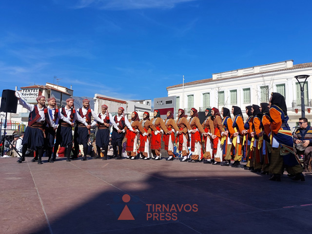 Την Κυριακή 19 Φεβρουαρίου στην κεντρική πλατεία Τυρνάβου παρουσιάστηκαν χοροί από τους Συλλόγους του Τυρνάβου που εντυπωσίασαν και καταχειροκροτήθηκαν από τον κόσμο που συγκεντρώθηκε και απόλαυσε την εκδήλωση.