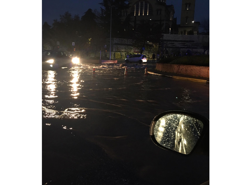 Το οδόστρωμα στο σημείο έχει υποστεί ζημιά ενώ παράλληλα πολλά σημεία της Λάρισας δεν έχουν καθαρό νερό.