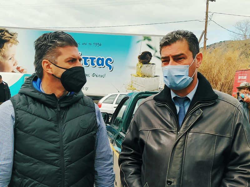 Στο Δαμάσι, που χτυπήθηκε από τον Εγκέλαδο, συναντήθηκε ο Θανάσης Παιδής με τον αντιπρόεδρο του ΕΛΓΑ Νίκο Δούκα.