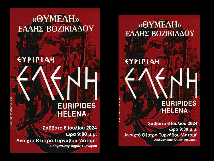 Ο Δήμος Τυρνάβου διοργανώνει τη θεατρική παράσταση «ΕΛΕΝΗ» του Ευριπίδη, από το θέατρο ΘΥΜΕΛΗ σε σκηνοθεσία Έλλης Βοζικιάδου.