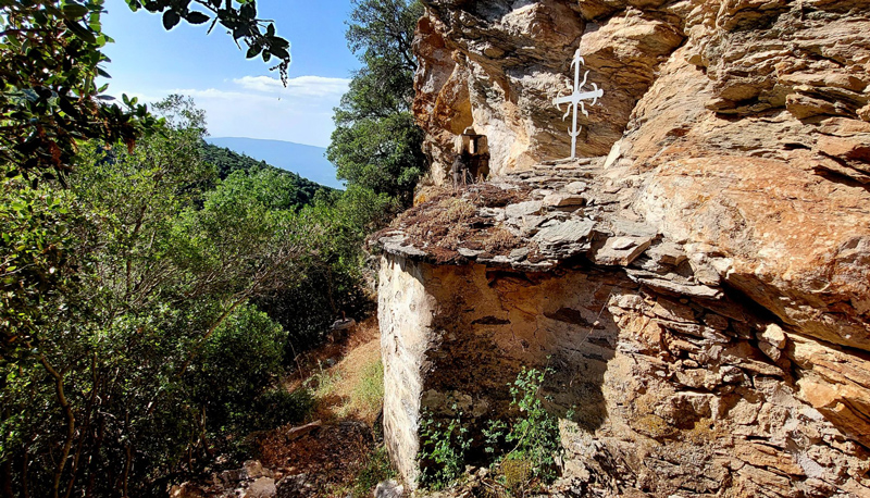 Θεία λειτουργία στο «Ασκηταριό» του οσιομάρτυρα Αγίου Δαμιανού του Νέου στην Ανατολή Αγιάς