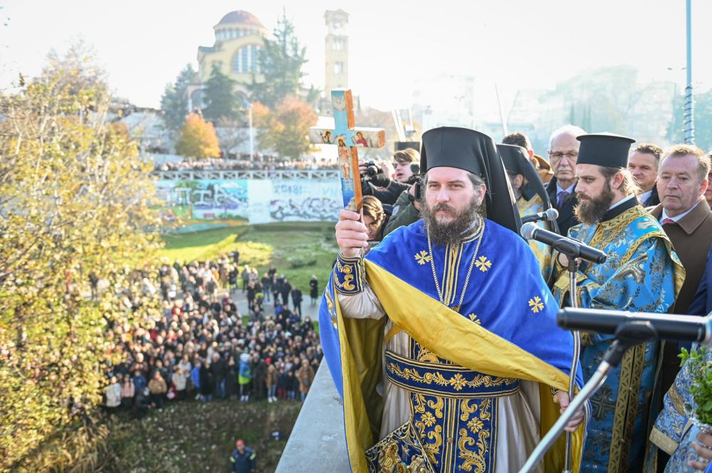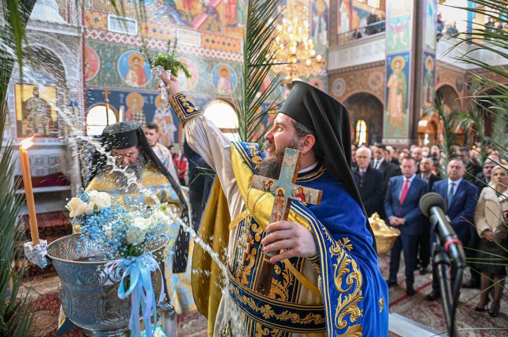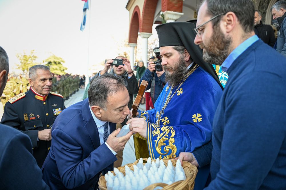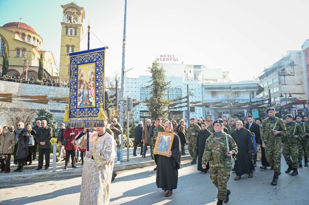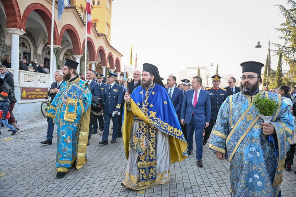 Επίκεντρο του εορτασμού ο Μητροπολιτικός Ναός του Αγίου Αχιλλίου, οπού τελέστηκε ο Μεγάλος Αγιασμός από τον Πρωτοσύγκελλο της Μητροπόλεως μας Αρχιμ. κ. Ιγνάτιο Μουρτζανό, εκπροσωπώντας τον Σεβασμιώτατο Μητροπολίτη Λαρίσης και Τυρνάβου κ. Ιερώνυμο, ο οποίος συμμετείχε στη Θεία Λειτουργία στον Πατριαρχικό Ναό του Αγίου Γεωργίου στο Φανάρι και ακολούθως, στη ρίψη του Τιμίου Σταυρού στον Κεράτιο Κόλπο, προεξάρχοντος της Α.Θ.Π. του Οικουμενικού Πατριάρχου κ.κ. Βαρθολομαίου.