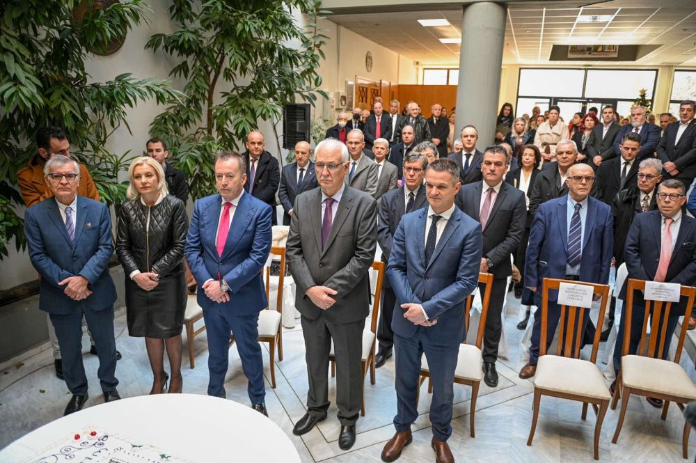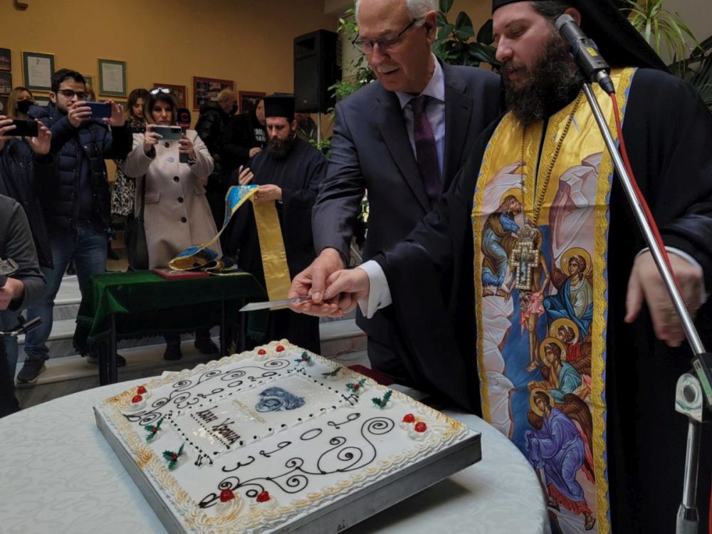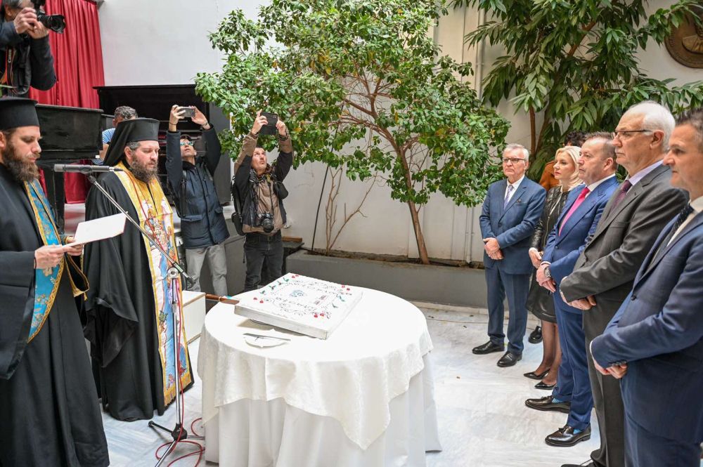 Εν συνεχεία, στο Δημοτικό Ωδείο της πόλεως μας πραγματοποιήθηκε η καθιερωμένη κοπή της Βασιλόπιτας του Δήμου Λαρισαίων από τον Πρωτοσύγκελλο π. Ιγνάτιο, ο οποίος αφού μετέφερε τις ευχές του Ποιμενάρχου μας, ευχήθηκε σε όλους η Επιφάνεια του Αγίου Τριαδικού Θεού να είναι η αρχή της φώτισης όλων μας.