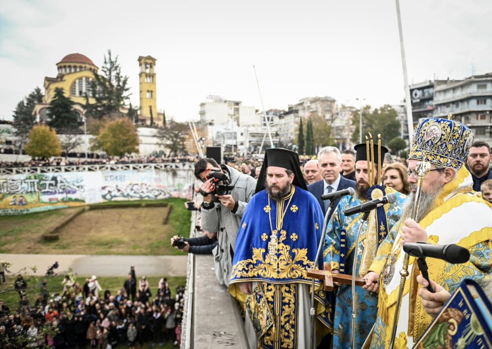 Πλήθος πιστών συμμετείχε από τη γέφυρα του Πηνειού την κατάδυση του Τιμίου Σταυρού και τον καθαγιασμό των υδάτων.