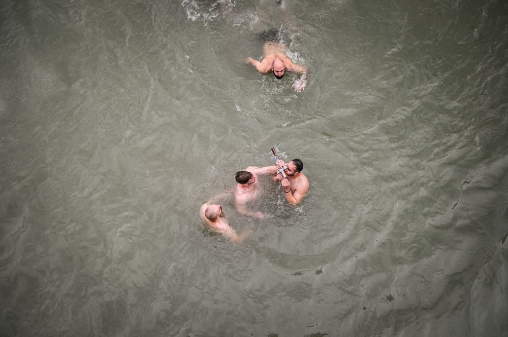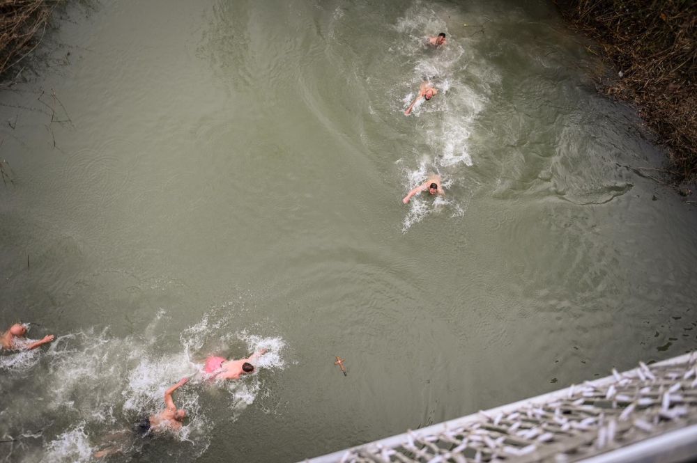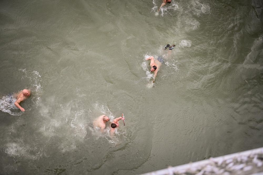 Αρκετοί ήταν εκείνοι που βούτηξαν στα παγωμένα νερά του ποταμού για να λάβουν την ευλογία του Σταυρού, τον οποίο έπιασε ο 22χρονος κ. Ιωάννης Τσουρτσούρης.