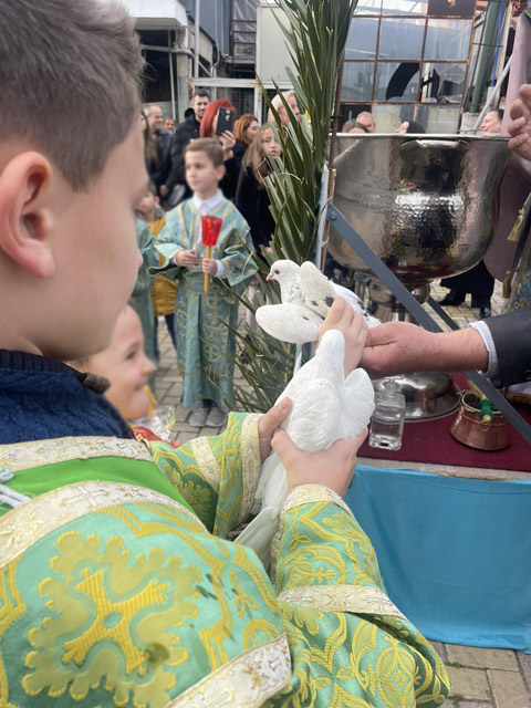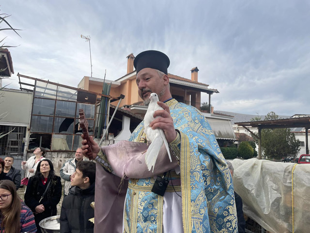 Μικρά παιδιά κρατούσαν περιστέρια στα χέρια τους και τα άφησαν στον ουρανό ενώ όλοι μαζί έψαλαν Εν Ιορδάνη βαπτιζομένου σου Κύριε.
