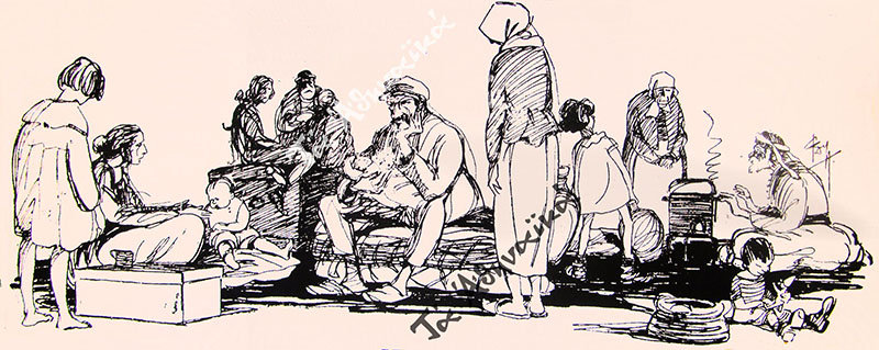 Ένας ολόκληρος λαός στο αποκορύφωμα της μετοικεσίας του, καθώς προσπαθεί να καταλάβει πώς έγινε και από τη μια στιγμή στην άλλη βρέθηκε ριγμένος από την εδώ μεριά του Αρχιπελάγους. Βαθιές και χαίνουσες είναι οι από μέσα τους πληγές, και θ’ αργήσει να τις κλείσει ο χρόνος, καθώς δεν είναι εύκολο να δαμαστεί ο μεγάλος φόβος του ανθρώπου μπροστά στο άγνωστο της αυριανής μέρας. Για τις άλλες, τις απέξω, είναι γεμάτα τα νοσοκομεία και οι κλινικές της Αθήνας από ανθρώπους που προσπαθούν να τις γιατροπορέψουν.”Παιδιά, γέροντες, γυναίκες περνάνε τώρα ατέλειωτες μέρες υπομονής και εγκαρτέρησης. Δακρυσμένοι. Ανέστιοι. Απογοητευμένοι. Με κυρίαρχη εικόνα, όπου κι αν γυρίσεις τα μάτια σου, εκείνη της φτώχειας και της θλίψης. Και επίδεσμοι, πολλοί επίδεσμοι, που μ’ αυτούς οι άνθρωποι τυλίγουν άλλοτε με φροντίδα και άλλοτε όπως όπως τα τραυματισμένα χέρια και πόδια τους.