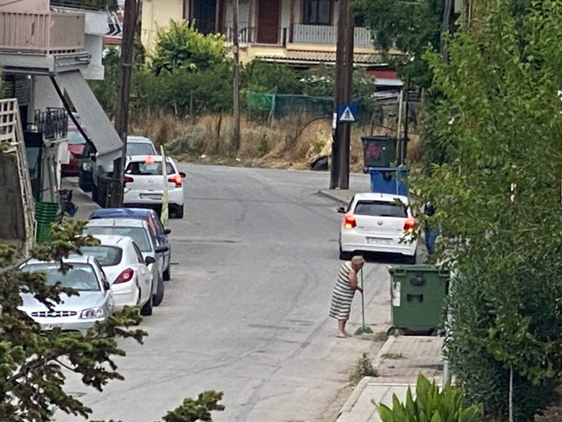 Σιγά μην σταματήσουν στην αυλή τους, καθαρίζουν και τους δρόμους όπως κάνει κάθε μέρα η κυρία στην φωτογραφία και όπως μας είπε η σκούπα μπορεί να περάσει μια φορά στις 15 μέρες και άν…