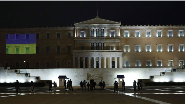 Με τη σημαία της Ουκρανίας φωταγωγήθηκε απόψε η Βουλή των Ελλήνων