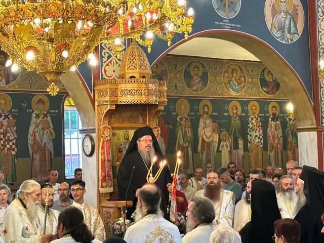 Το πρωί της Δευτέρας 17 Ιουλίου τελέστηκε ο Όρθρος και Τρισαρχιερατικό Συλλείτουργο, ιερουργούντος του Σεβασμιωτάτου Μητροπολίτου Τριπόλεως κ. Θεοφυλάκτου.