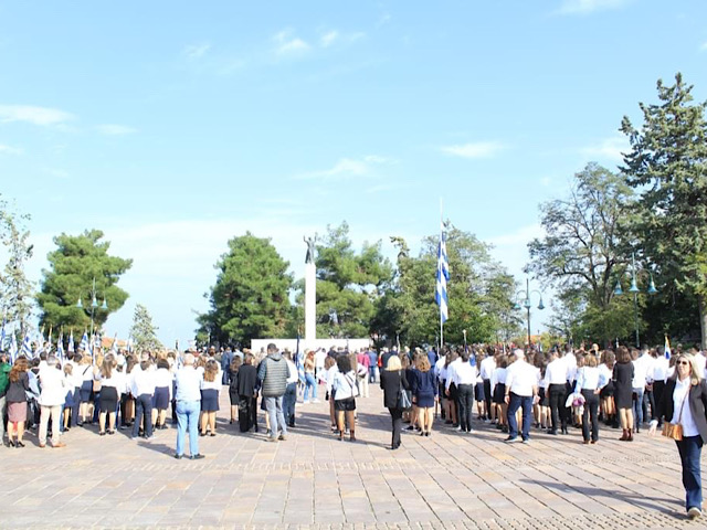 Αντιπροσωπείες σχολείων της πόλης και εκπρόσωποι αρχών και φορέων, συγκεντρώθηκαν κάτω από το Δημαρχείο και στη συνέχεια πορεύθηκαν προς το Ηρώο της πόλης στον λόφο του Φρουρίου.