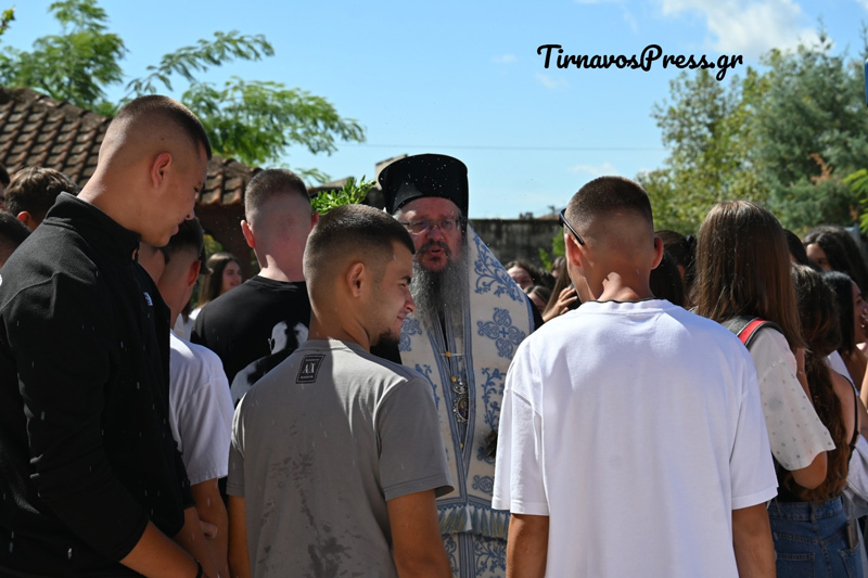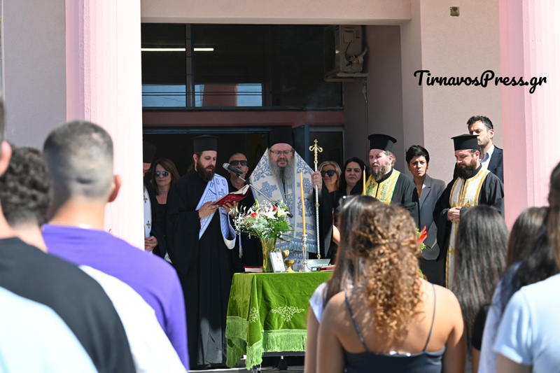 Σε ένα κλίμα χαράς και αισιοδοξίας, πραγματοποιήθηκε ο αγιασμός του Γενικού Λυκείου Τυρνάβου, σηματοδοτώντας την έναρξη της νέας σχολικής χρονιάς. Τον αγιασμό τέλεσε ο Σεβασμιότατος Μητροπολίτης Λαρίσης και Τυρνάβου κ.κ. Ιερώνυμος ενώ παρευρέθηκαν η Αντιπεριφερειάρχης Λάρισας κα Μαρία Γαλλιού, ο Δήμαρχος Τυρνάβου κ. Στέλιος Τσικριτσής και η Αντιδήμαρχος Πολιτισμού και Παιδείας κα Ευγενία Μαμανου – Χατζή.
