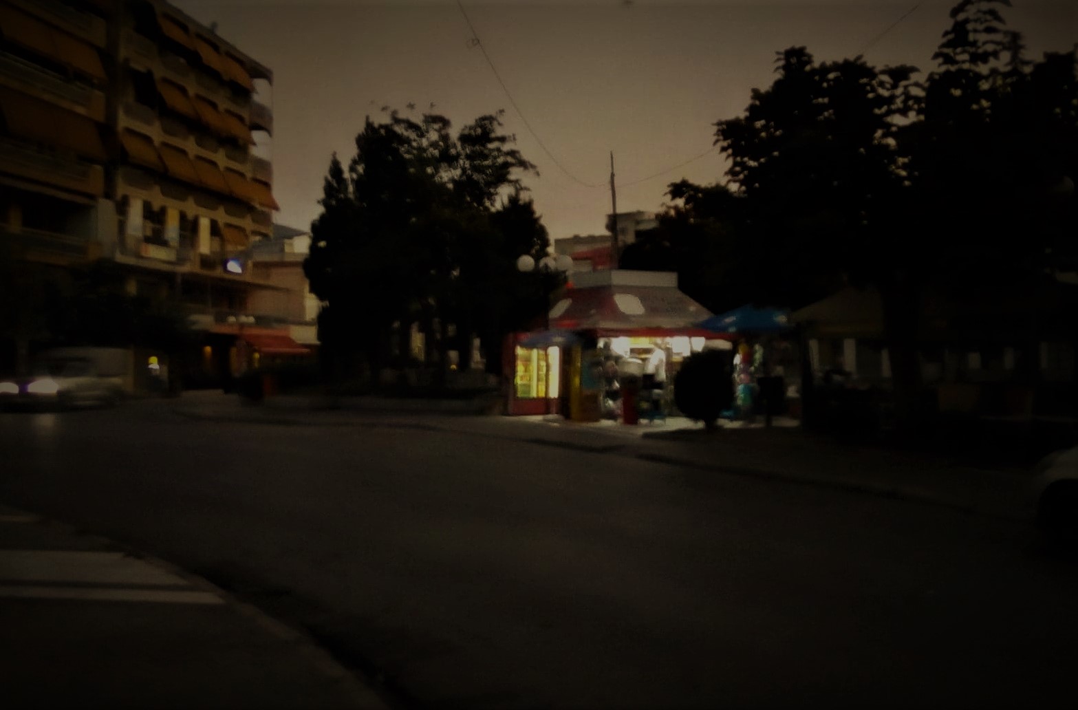 Τα φώτα στους στύλους αναμμένα ακόμα χαρίζουν μια απόκοσμη ομορφιά στη κοιμισμένη ακόμα πόλη ,εκείνη την ώρα δεν υπάρχει ασχήμια ,είναι καλά κρυμμένη στο θολούρα που φτιάχνει η νύχτα που φεύγει με τη μέρα που έρχεται.