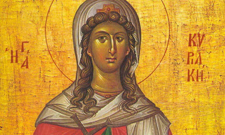 εφήμωσε λαμπρώς τους κομψούςτων ασεβών του Πνεύματος τη μαχαίρα, και νυν ως μάρτυς στεφθείσα, αιτείται πάσι το μέγα έλεος.