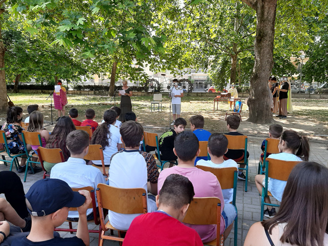 Ε΄τάξης, με την καθοδήγηση της δασκάλας τους κ. Έφης Τσιγάρα, αποχαιρέτησαν τους απόφοιτους  του σχολείου με συγκινητικά λόγια καιλέγοντάς τους την  «ΑΛΦΑΒΗΤΑ ΤΟΥ ΑΠΟΧΑΙΡΕΤΙΣΜΟΥ» της Αγγελικής Βαρελλά.