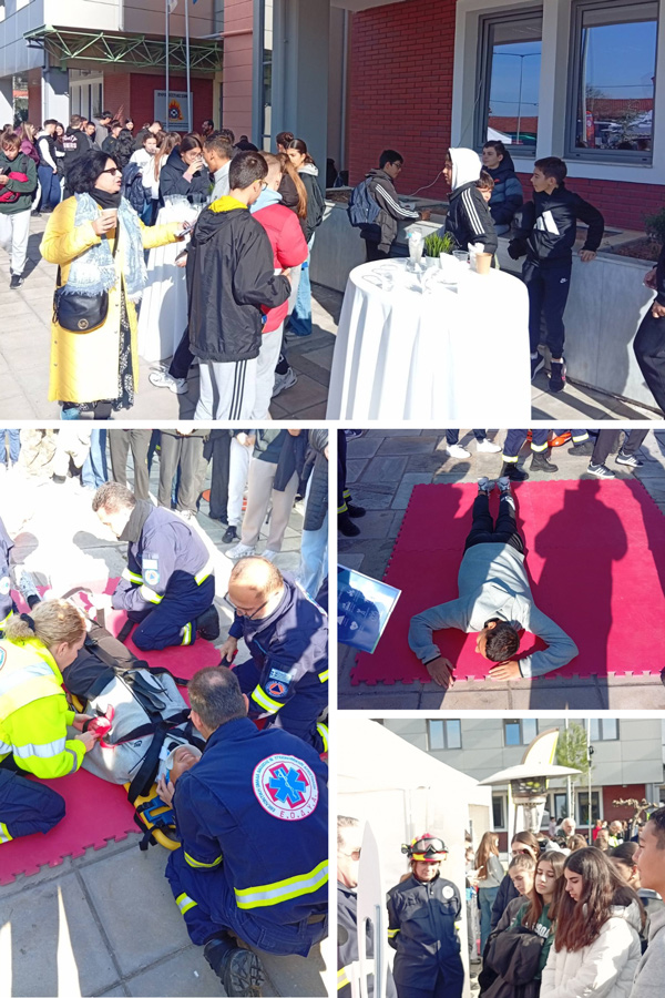 Κατά τη διάρκεια της δράσης, οι μαθητές/τριες είχαν την ευκαιρία να παρακολουθήσουν από κοντά πρακτικές εκπαιδεύσεις ΚΑΡΠΑ, χρήση πυροσβεστήρα και σωστικών μέσων, τεχνικές δεσίματος τραυμάτων, καθώς και οδηγίες για τη λήψη μέτρων αυτοπροστασίας στο σπίτι, στο σχολείο και στο αυτοκίνητο.