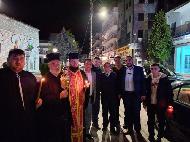 Το Άγιο Φως έφτασε στον Τύρναβο με εντυπωσιακή υποδοχή συνοδεία περιπολικών του Αστυνομικού Τμήματος Τυρνάβου και των Αντιδημάρχων Κώστα Χρυσοβέργη και Γεώργιου Σακούτσιου στον Μητροπολιτικό Ιερό Ναό Παναγία Φανερωμένη που το υποδέχτηκε ο π. Δημήτριος στον Άγιο Ιωάννη από τον π. Γεώργιο και στον Άγιο Γεώργιο από τον π. Ιάκωβο.